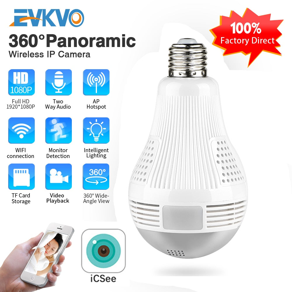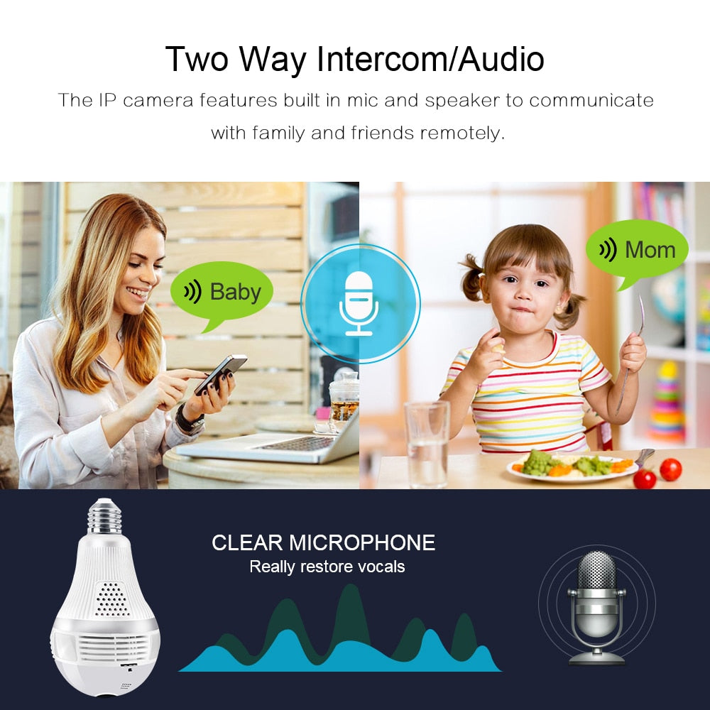 Wireless 360° Panoramic Wifi HD 1080P MOTION ACTIVATED Light Bulb Camera