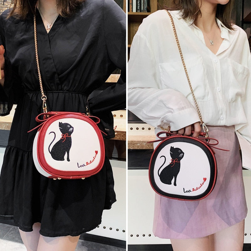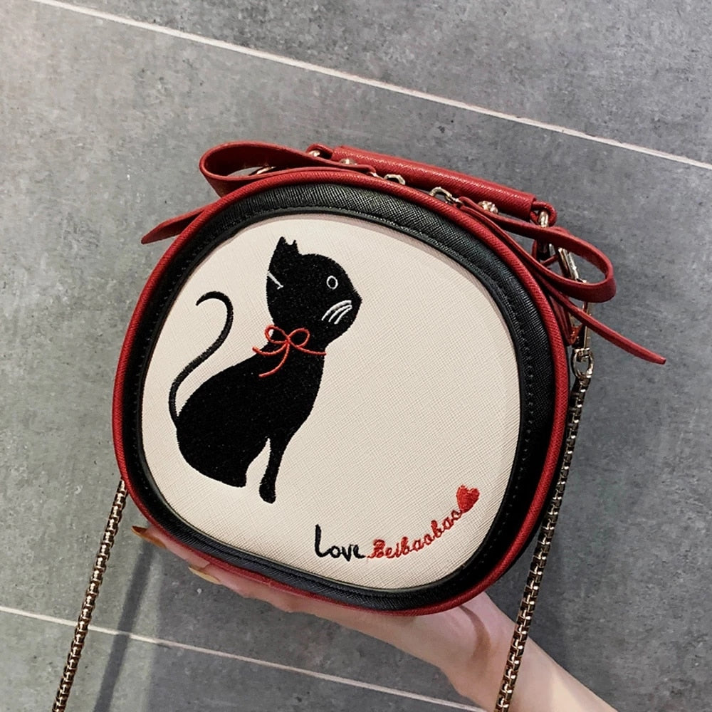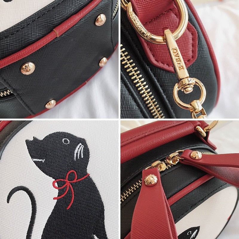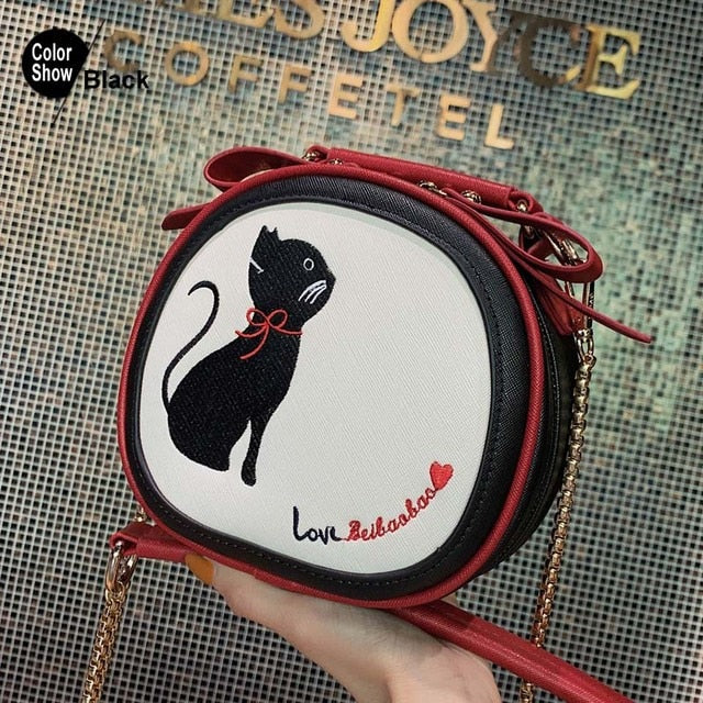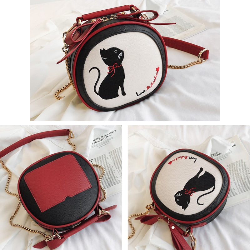 Women's Embroidery Cat Shoulder Bag - High Quality PU Leather Bag