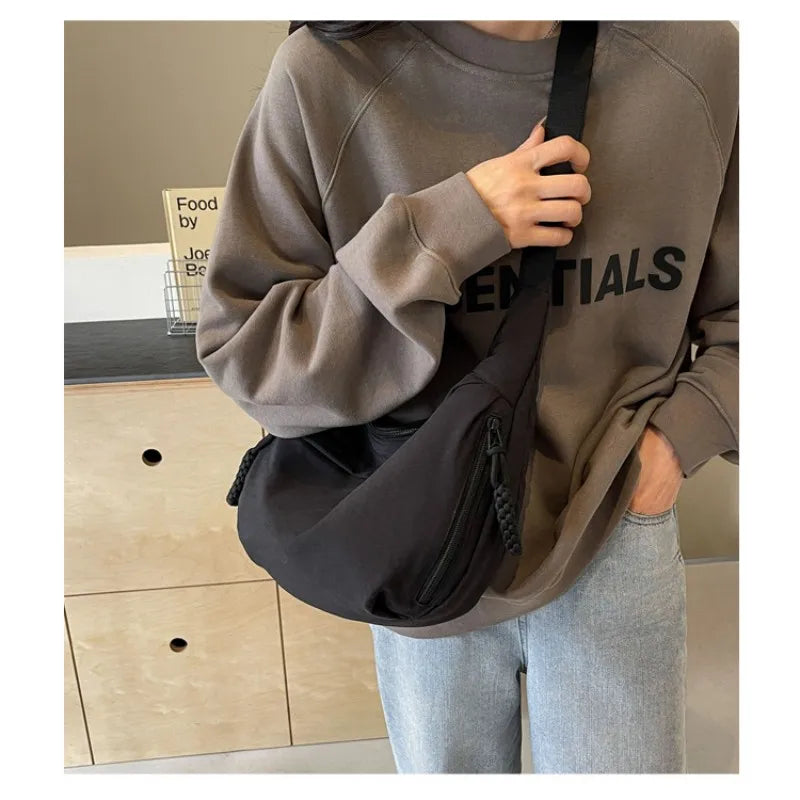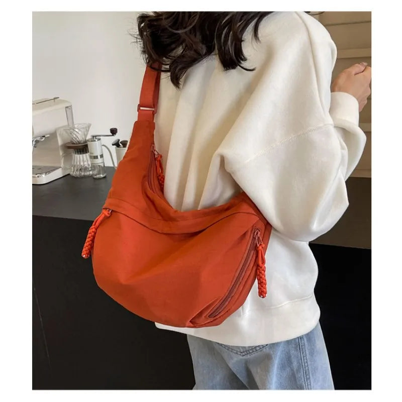Women's Fashion Plain Color Nylon Crossbody Bag