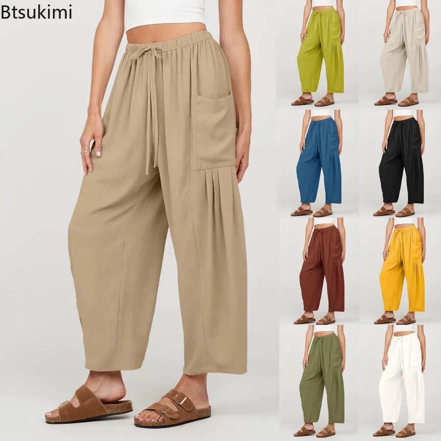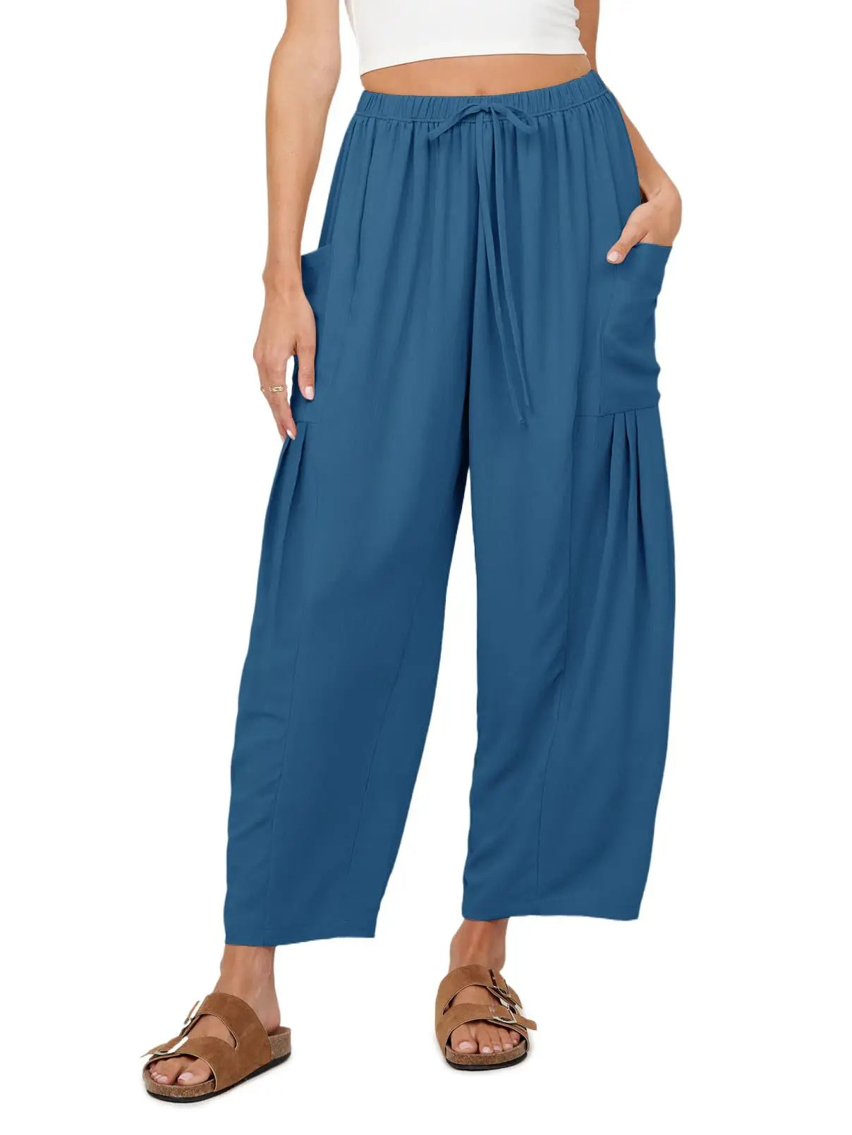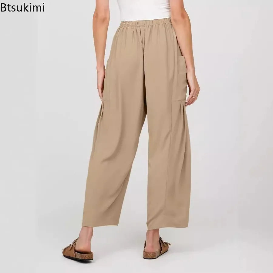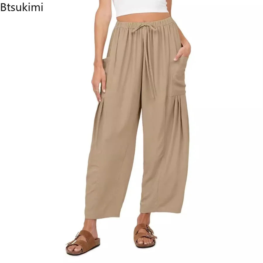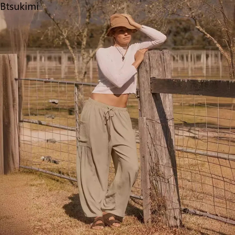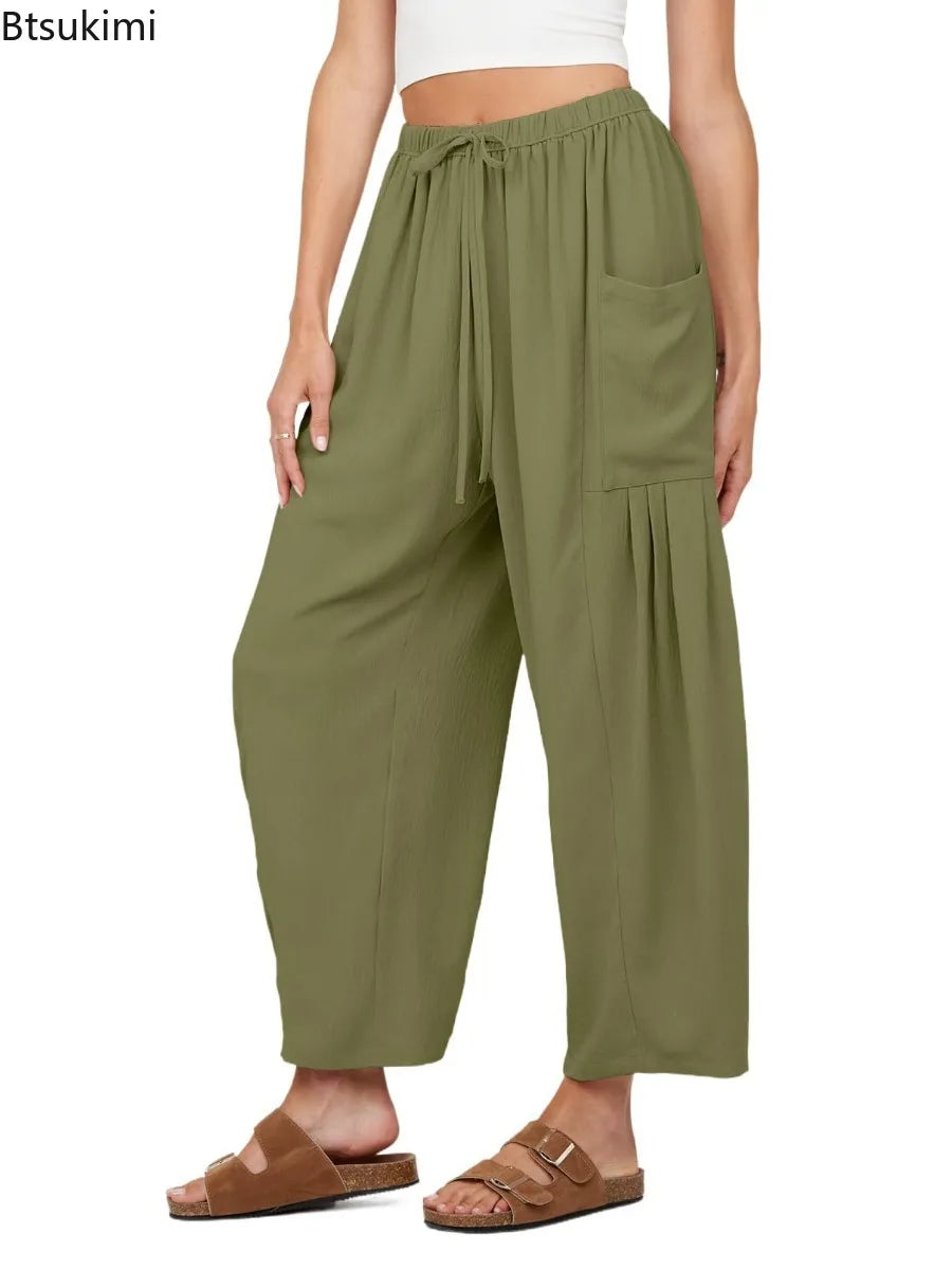 Summer Hot Sale Cargo Pants Women's Solid Casual Wide Leg Pants New Workout Loose Trousers Lady High Waist Drawstring Sweatpants