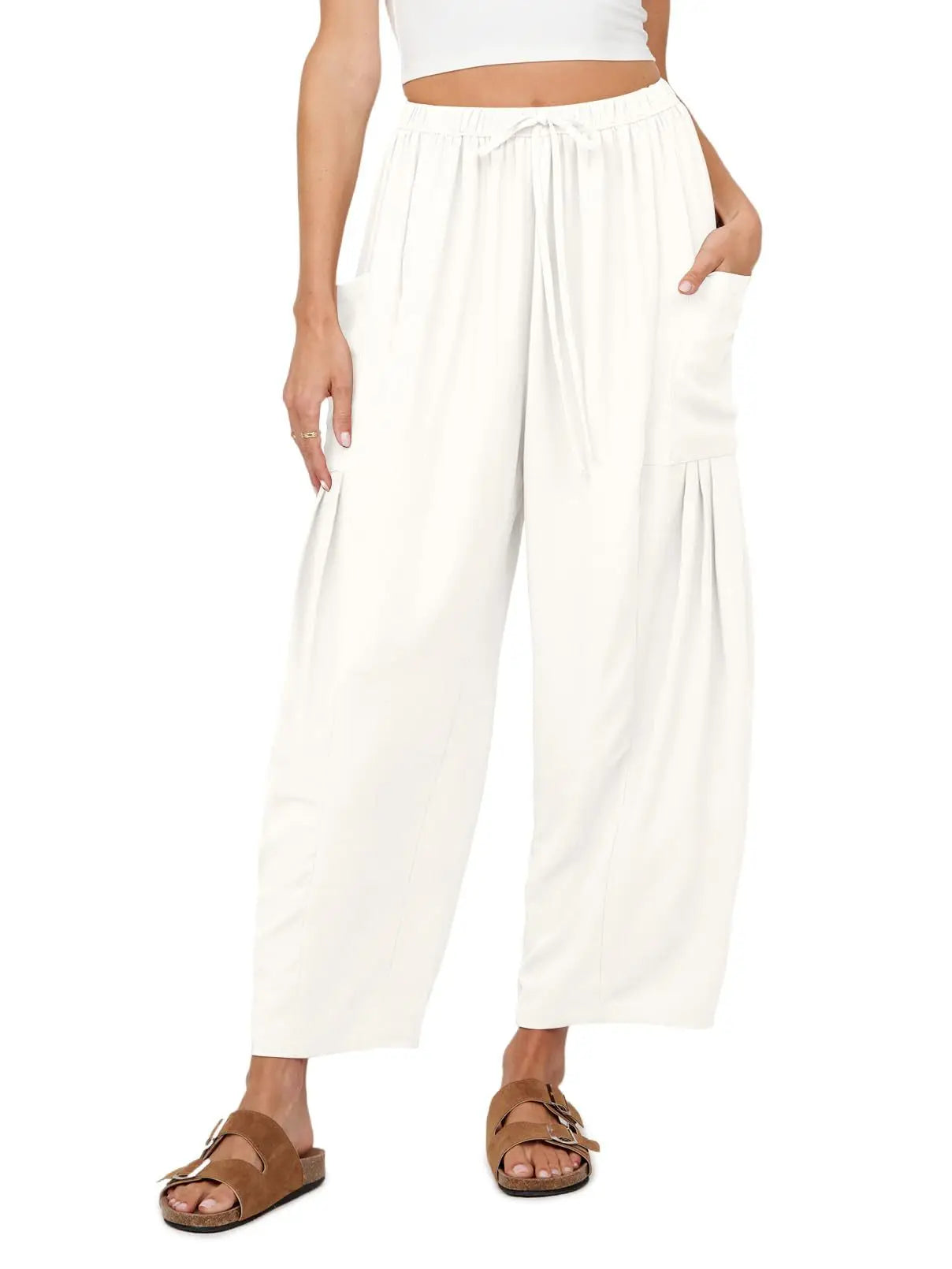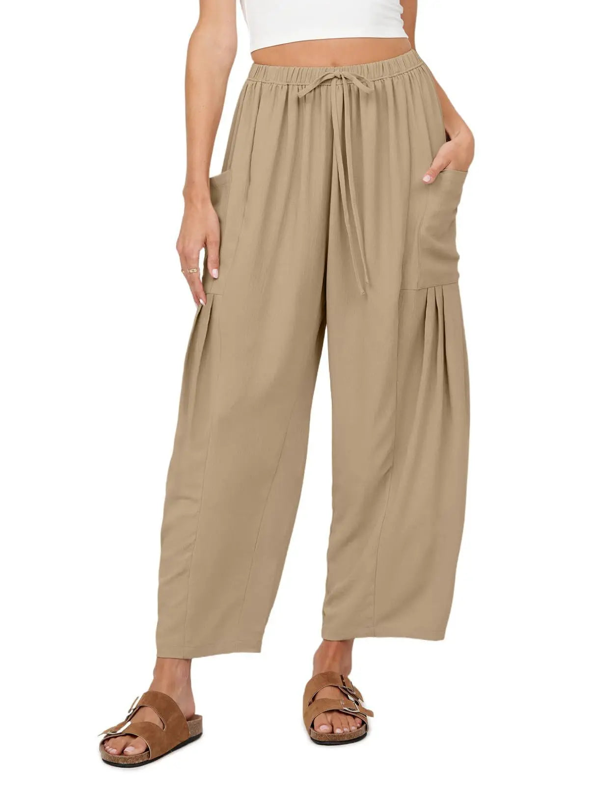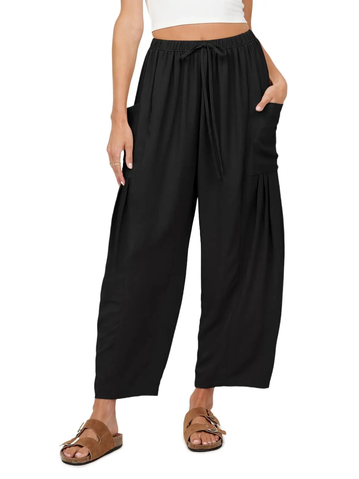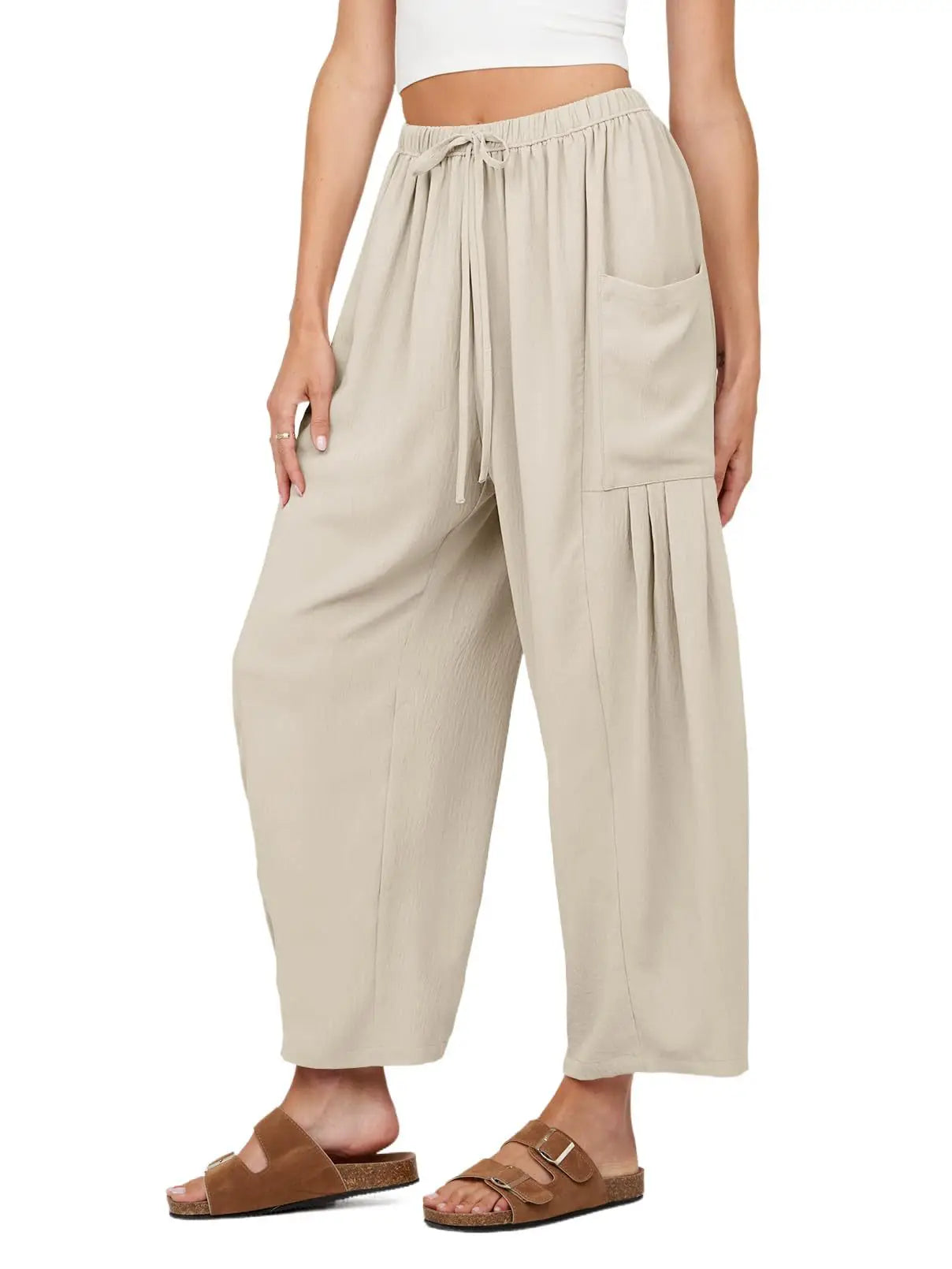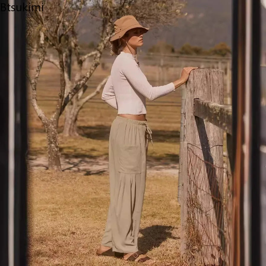 Summer Hot Sale Cargo Pants Women's Solid Casual Wide Leg Pants New Workout Loose Trousers Lady High Waist Drawstring Sweatpants