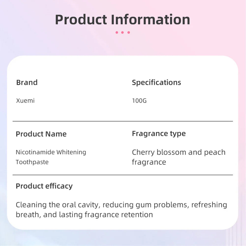 Refreshing Breath Toothpaste 100g Niacinamide Whitening Toothpaste Oral Cleaning Teeth Cleaning Brighten Teeth Teeth Care