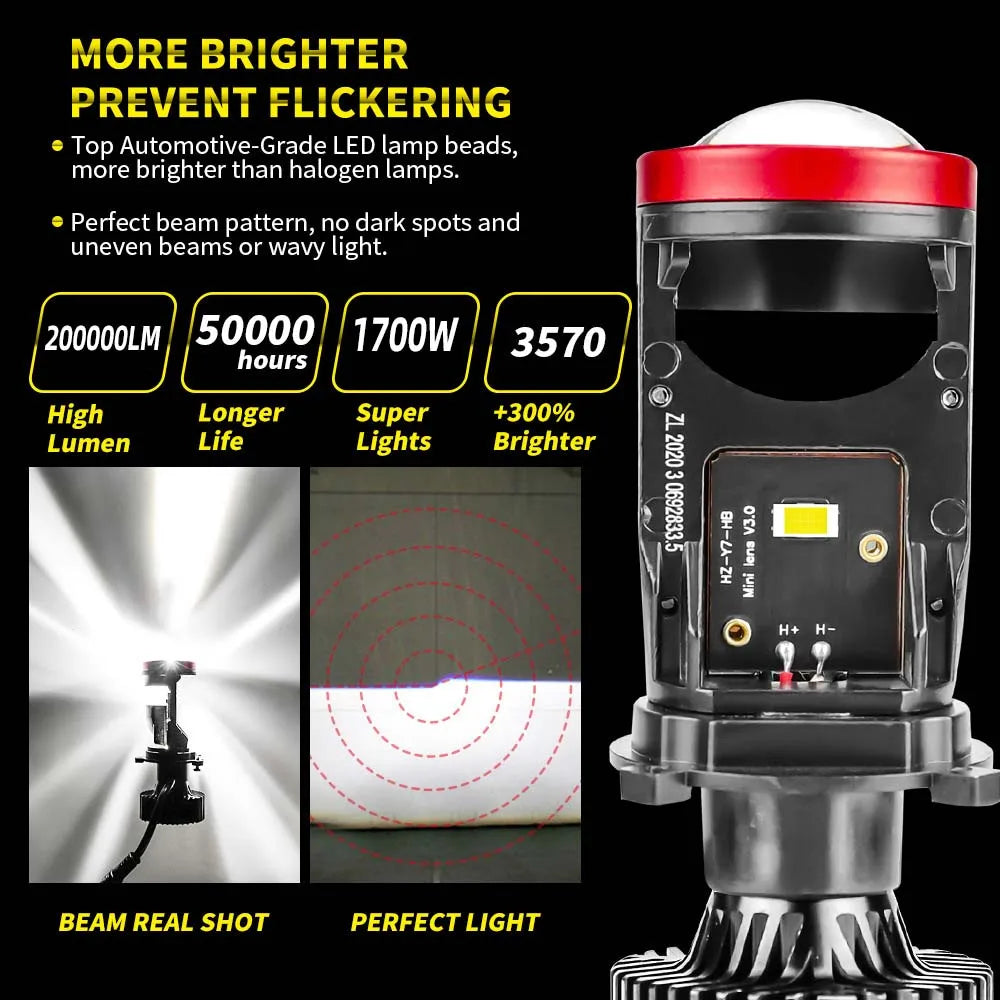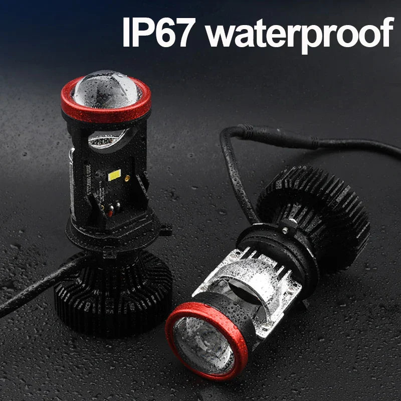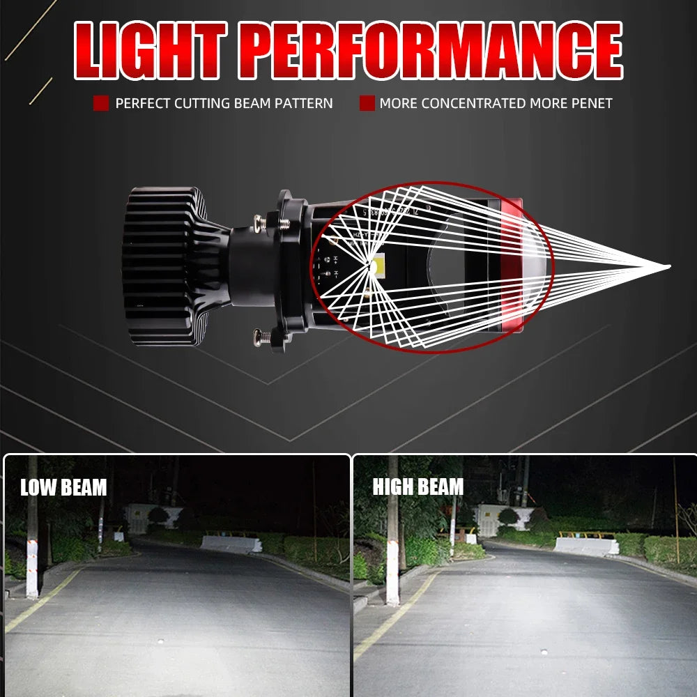 1.Built-in mini projector lens, separate H4 led headlight bulbs, low beam safe for oncoming vehicles, high beam for long distance lighting coverage.