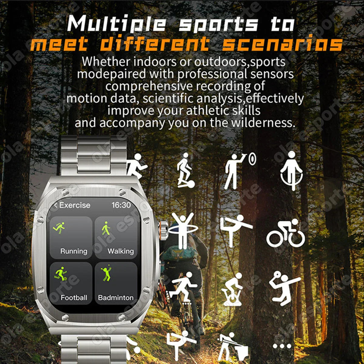 Watches support types: walking, running, hiking, cycling, skipping rope, basketball, badminton, football, yoga wait