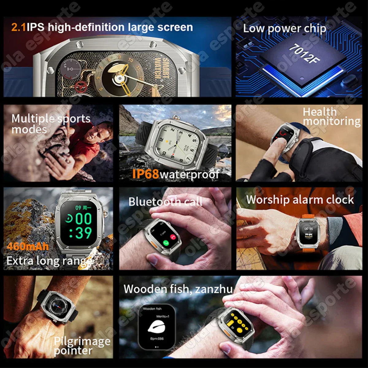 sleep monitoring, weather, ola esportemonthly calendar, remote photography, lock screen password, calculator,